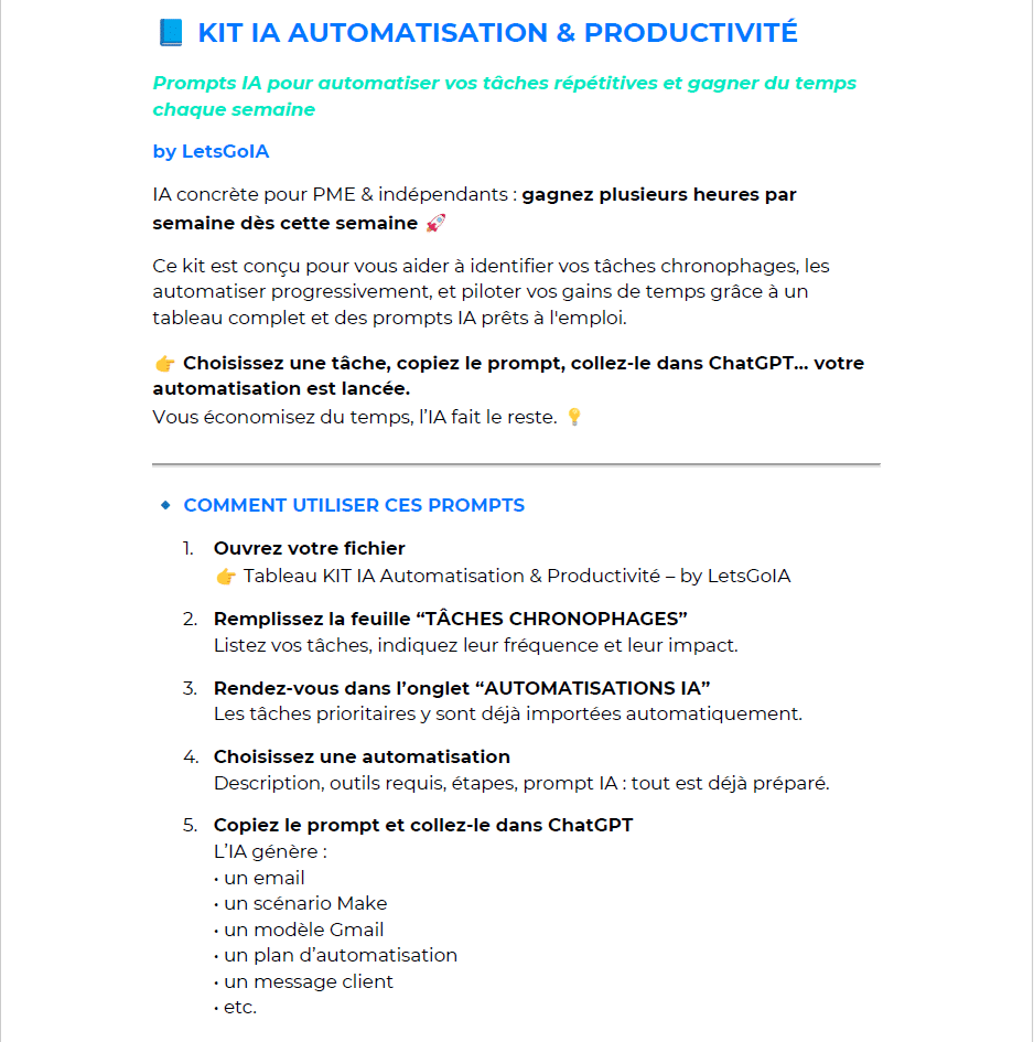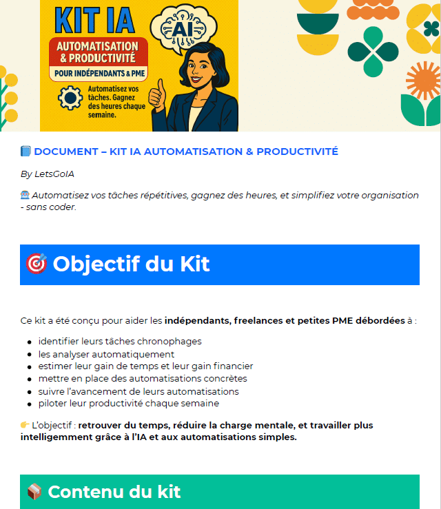 💼 Ce que contient le Kit IA Automatisation & Productivité